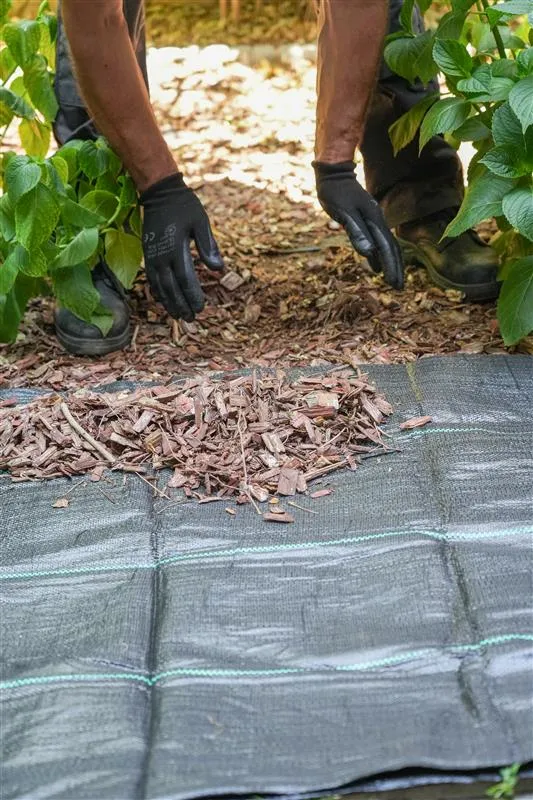 Мрежата с UV защита запазва влагата до 50% по-дълго и блокира 80% от светлината, нужна за растежа на плевелите.